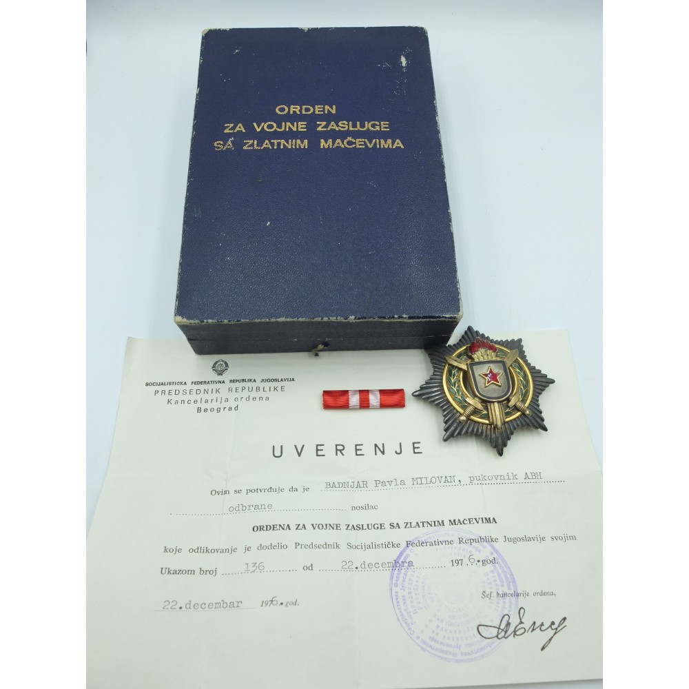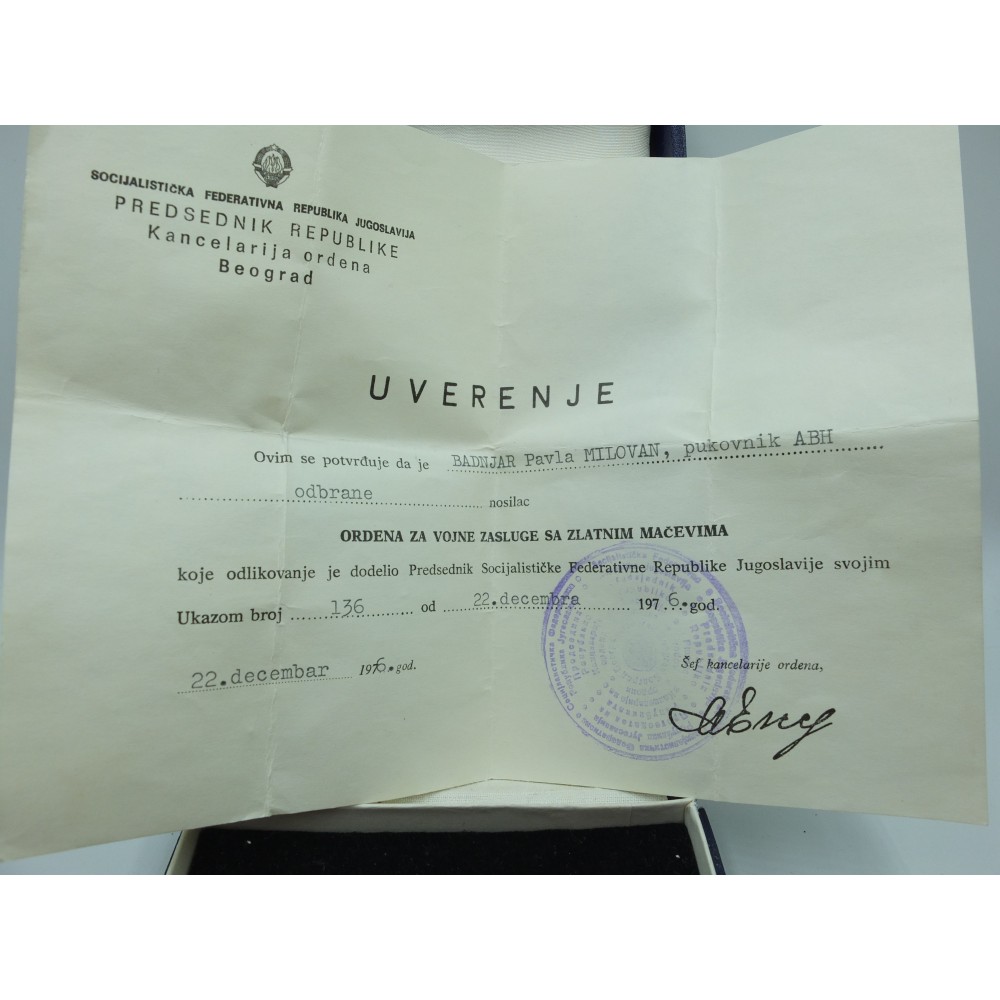 Jugosławia, Order Zasługi Wojskowej II klasa + pudełko + dokument