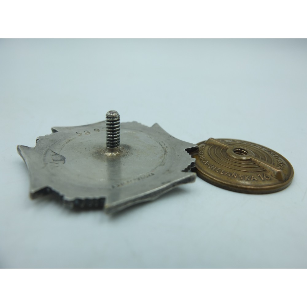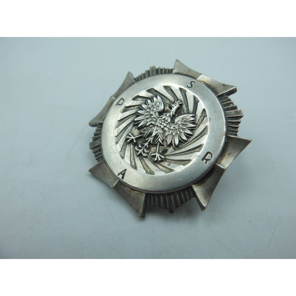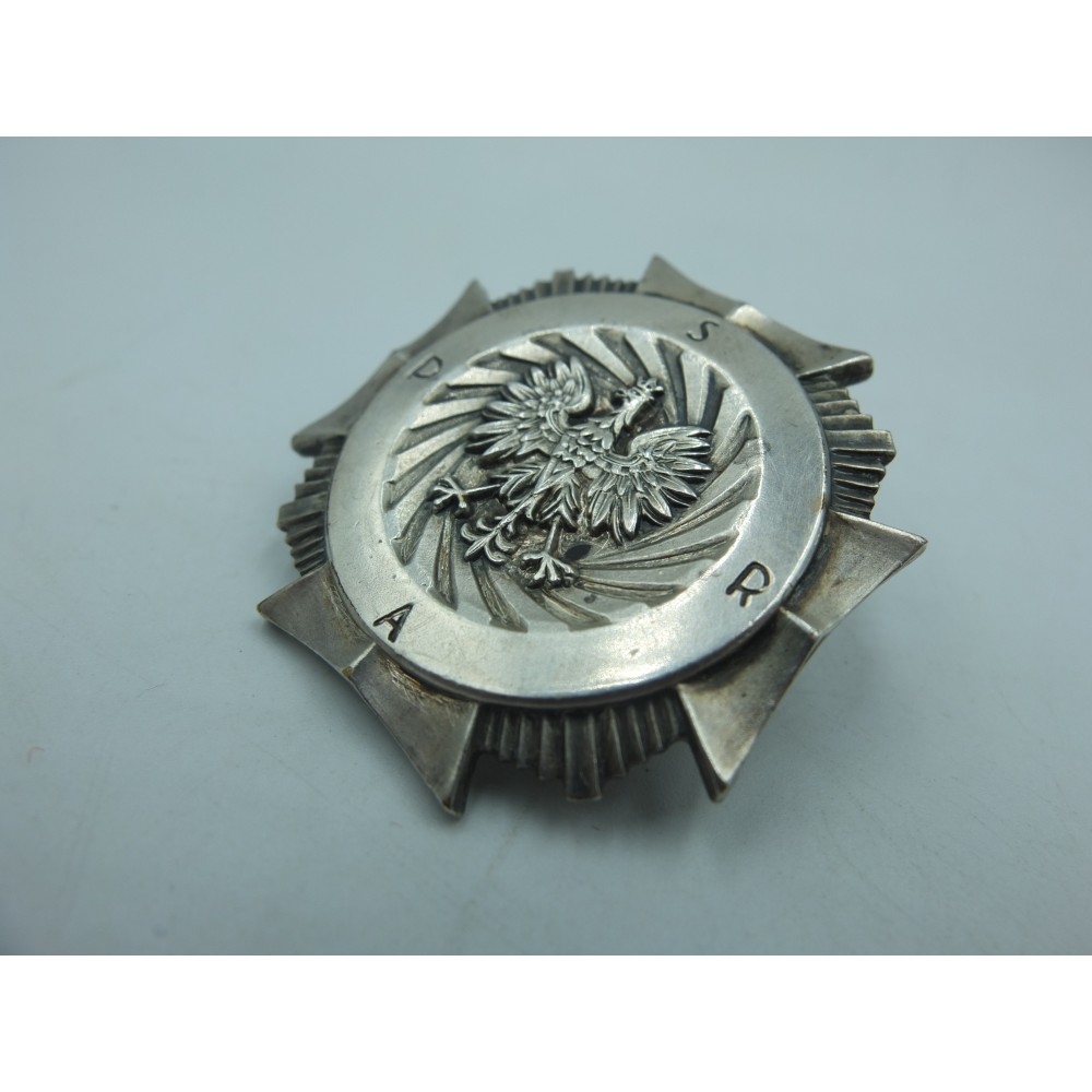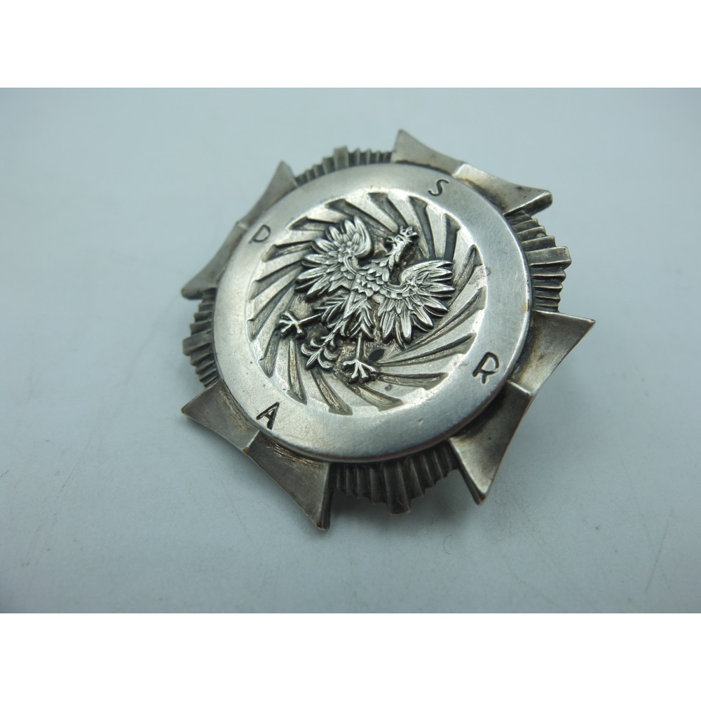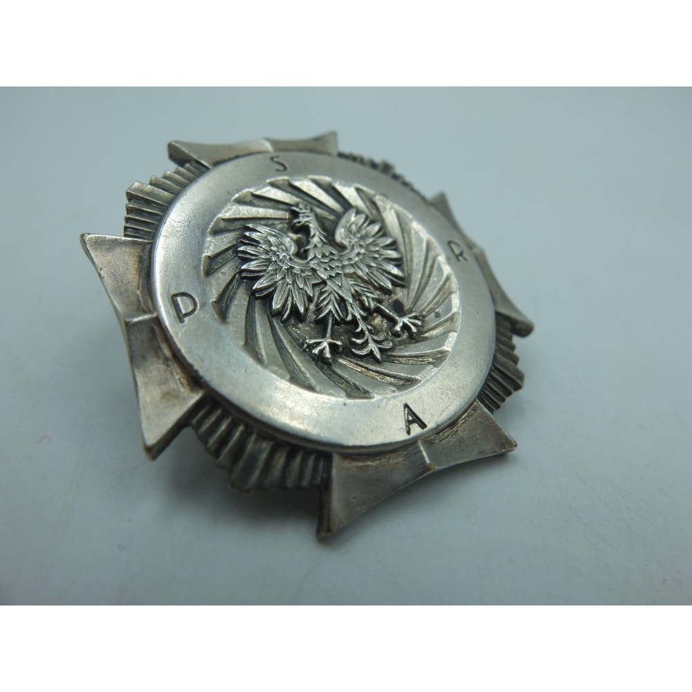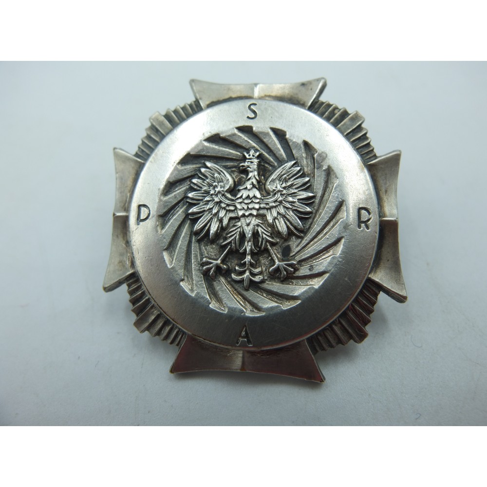 Odznaka pamiątkowa Wołyńskiej Szkoły Podchorążych Rezerwy Artylerii, Włodzimierz Wołyński, jednoczęściowa, w kształcie równoramiennego krzyża. W otoku inicjały S P R A, między ramionami krzyża promienie. na stronie odwrotnej numer 5393 i sygnatura wykonawcy A. NAGALSKI i SKA