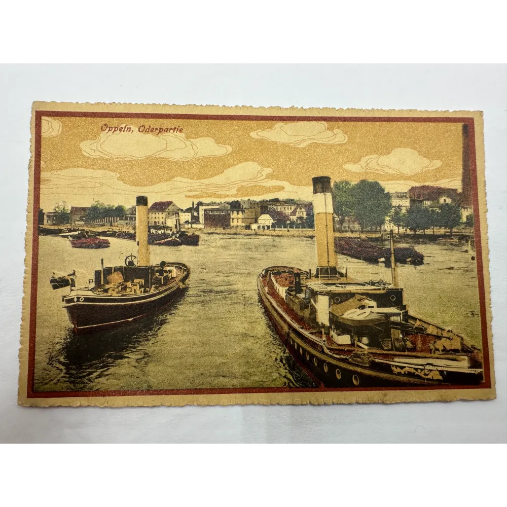 - Pocztówka OPOLE Oppeln rzeke Odra, statki FELDPOST GULZOW