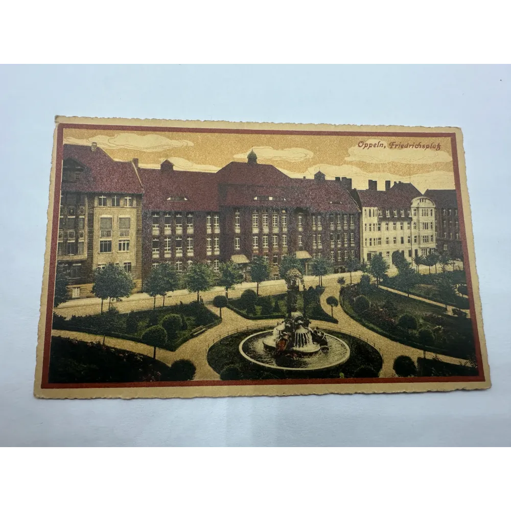 Pocztówka przedstawia Friedrichsplatz w Opolu (Oppeln), historyczny plac, który obecnie nosi nazwę Plac Wolności.